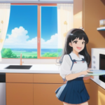 A cute anime character, female, pointing to a comparison chart with a thoughtful expression, helping a confused person understand complex information.