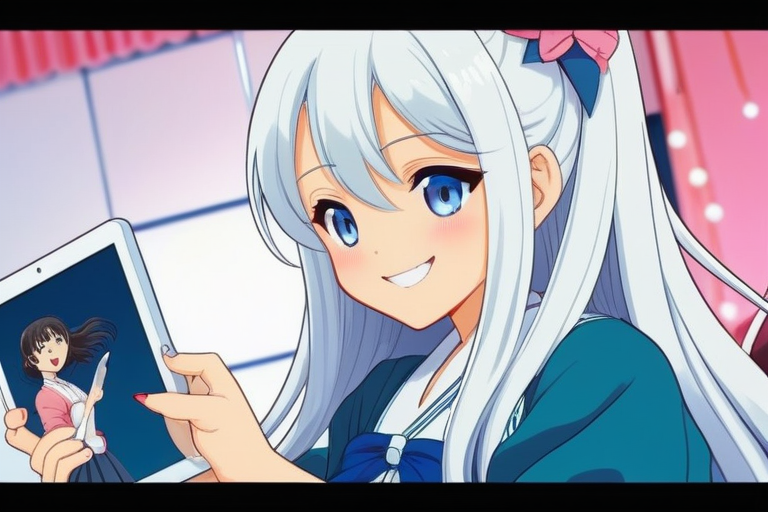 beautiful anime girl in a thinking pose, holding a checklist and a pen, a lightbulb appearing above her head