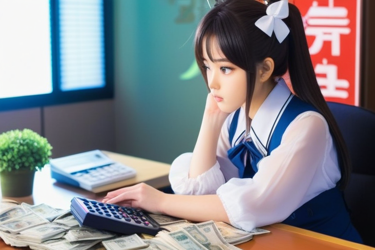 [[IMG_REQ: smart anime girl calculating on a tablet, focused expression, surrounded by numbers and charts]]